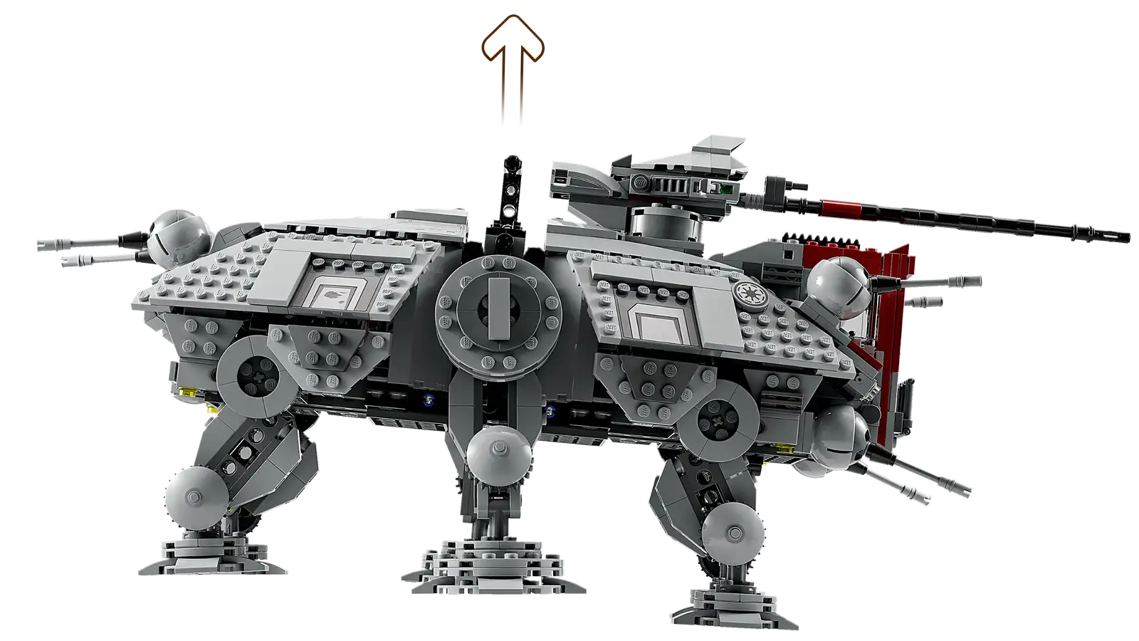 Battle-Ready Design: Features posable legs, a 360-degree rotating elevating heavy blaster cannon with 2 stud shooters, a detachable minifigure cockpit, and 2 detailed cabins with room for up to 7 minifigures.